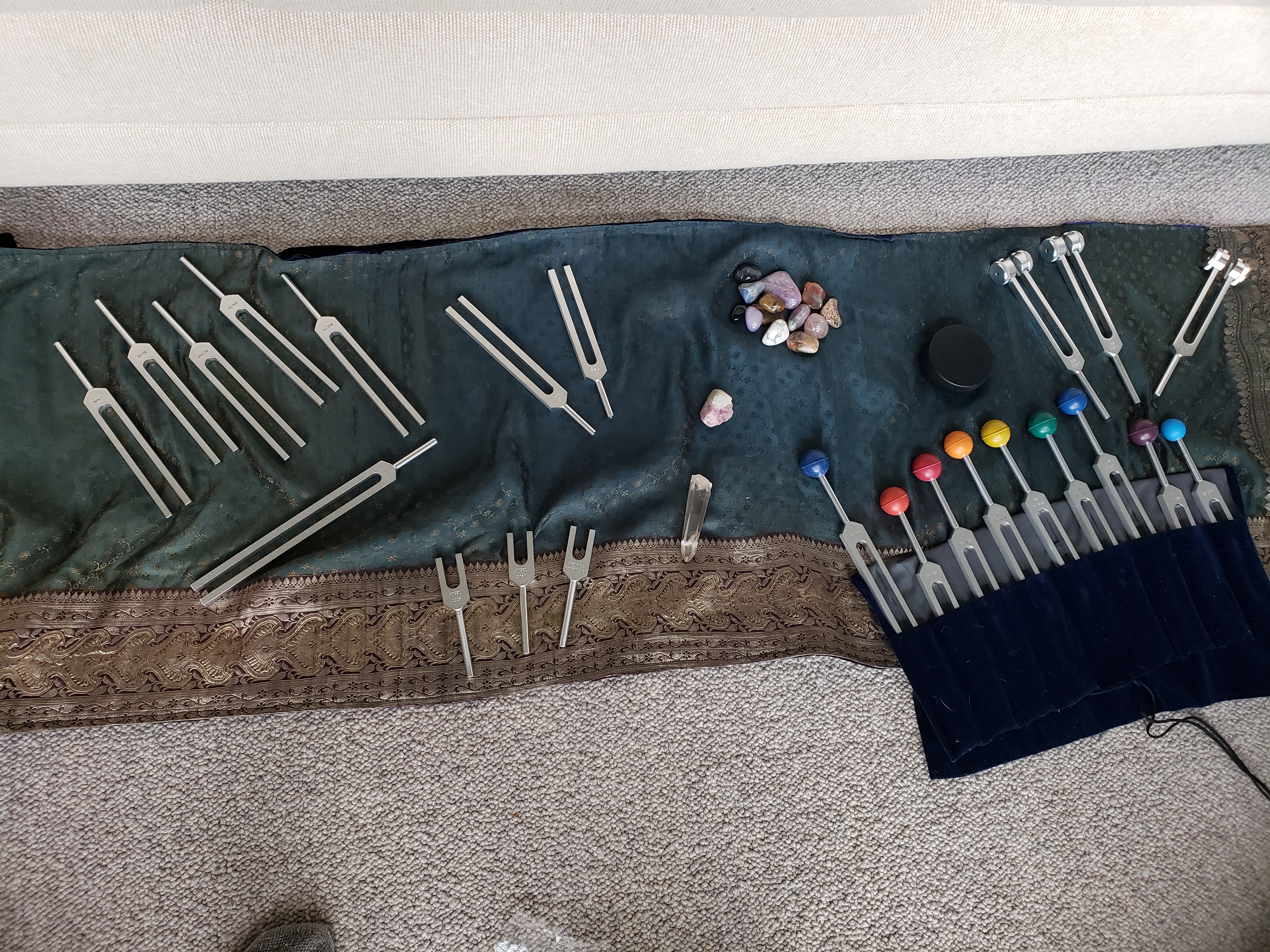 Tuning forks are used on your body to support physical health and around your body to relieve stress and facilitate deep relaxation. When participants are healthy, tuning forks are incorporated into our Reiki sessions and are used as one option for sound therapy. We choose the forks for their specific healing frequency. When this is coupled with the intention of all parties involved the following benefits can be felt.